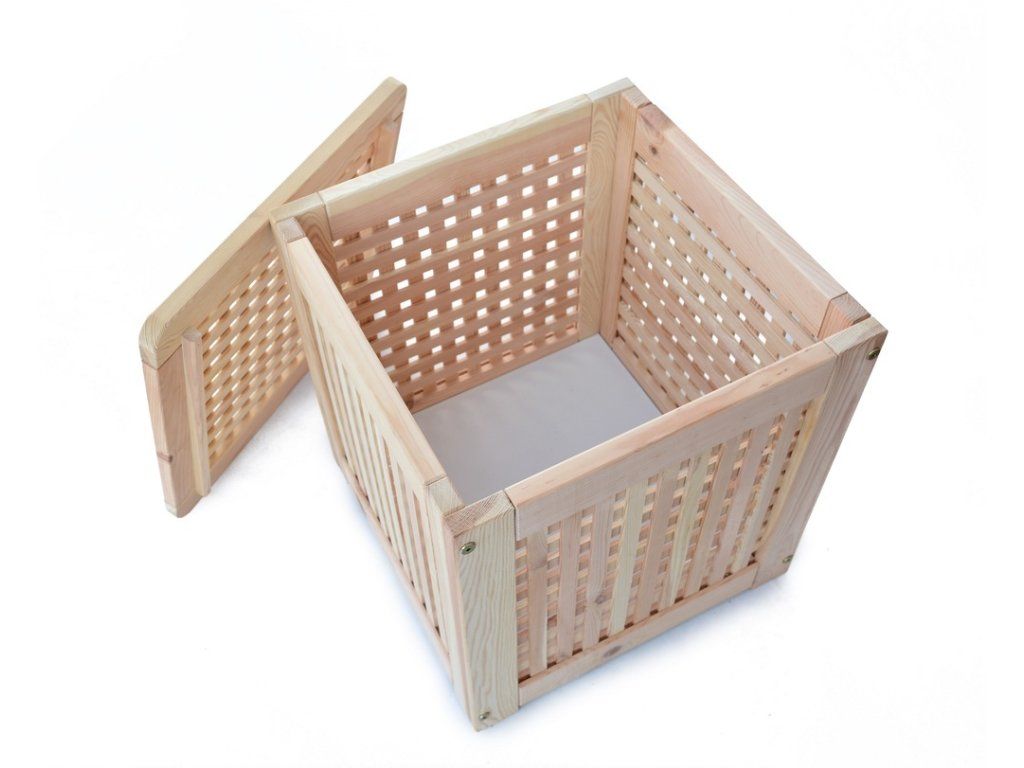 Konstrukce zajišťuje cirkulaci vzduchu. Moderní vzhled. Přírodní provedení umožňuje box natřít a ošetřit dle vlastní představy.