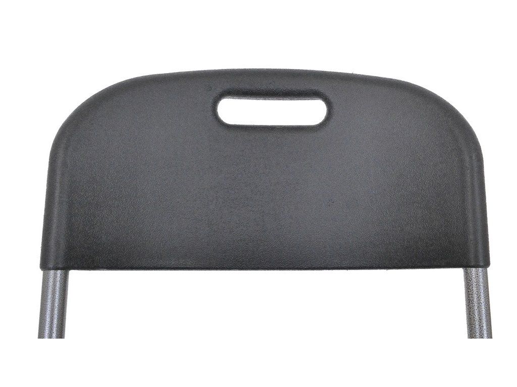 Skládací křeslo z velice pevného materiálu HDPE s ocelovou konstrukcí.