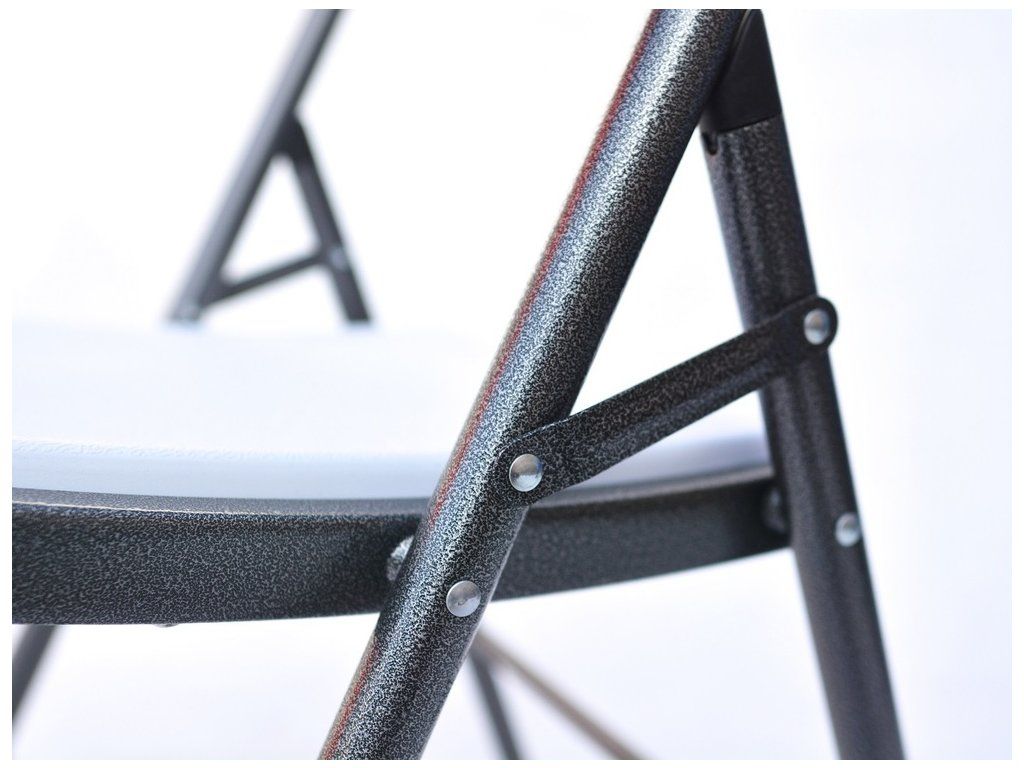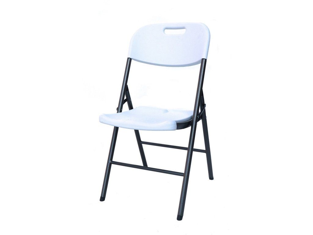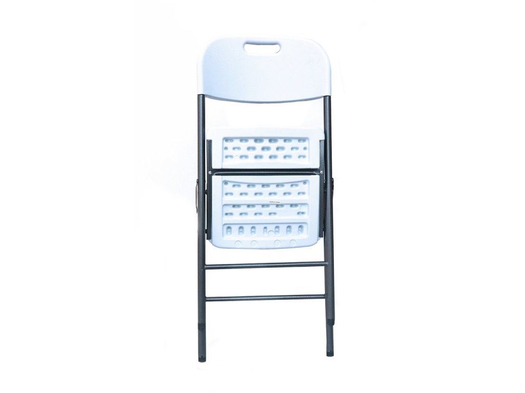 Skládací křeslo z velice pevného materiálu HDPE s ocelovou konstrukcí.
