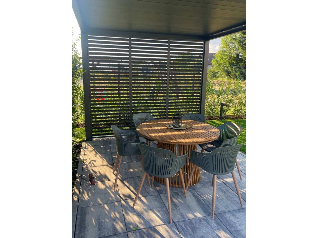 Pro maximální využití bioklimatických pergol nabízíme také příslušenství v podobě panelu s horizontálními fixními lamelami pro zastínění bioklimatické pergoly a získání většího soukromí.