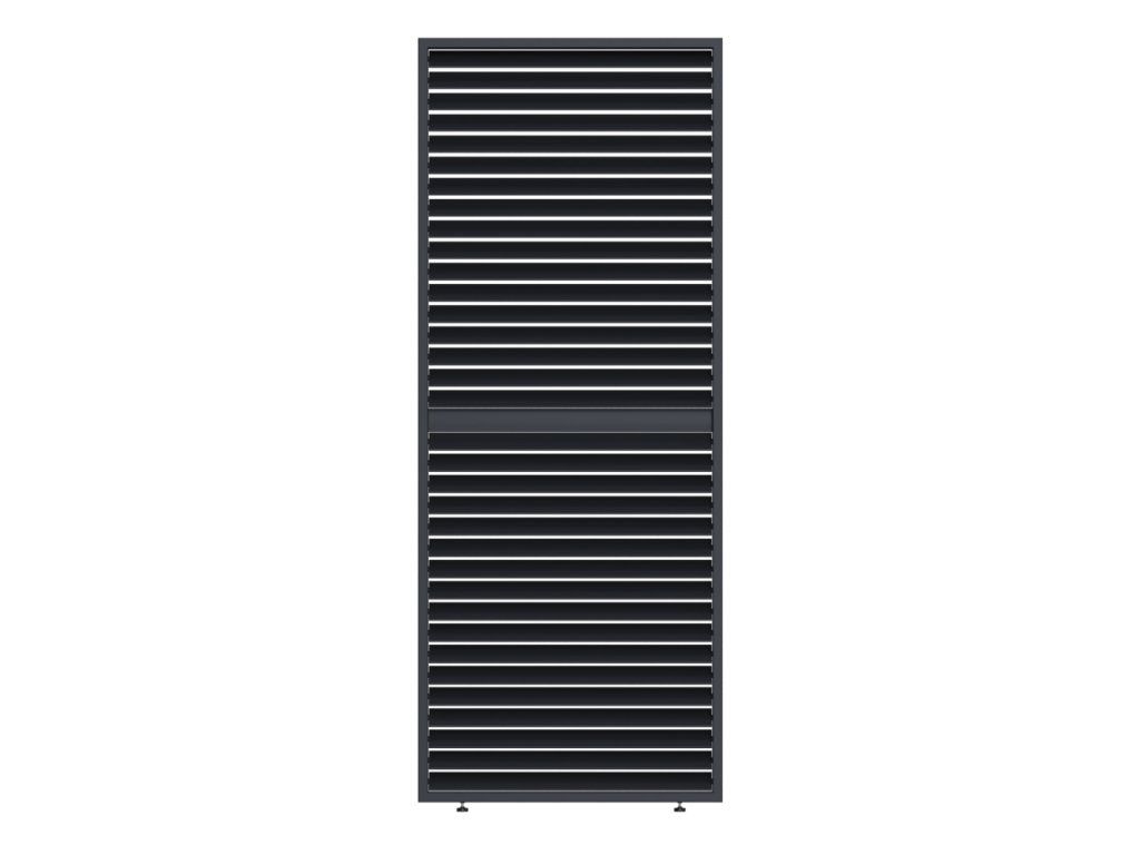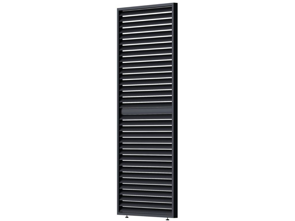Velmi pevná a stabilní konstrukce a lamely v antracitové barvě RAL 7016. Panel a lamely jsou vyrobeny z vysoce kvalitního hliníku, který je ošetřen práškovou barvou, což zaručuje odolnost vůči povětrnostním vlivům.