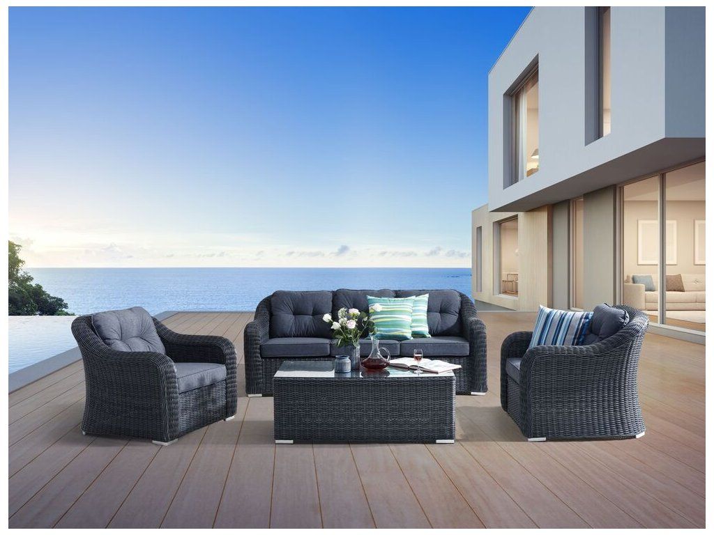 Luxusní souprava z kvalitního umělého ratanu, který odolává UV záření a teplotě od +50°C do -10°C.