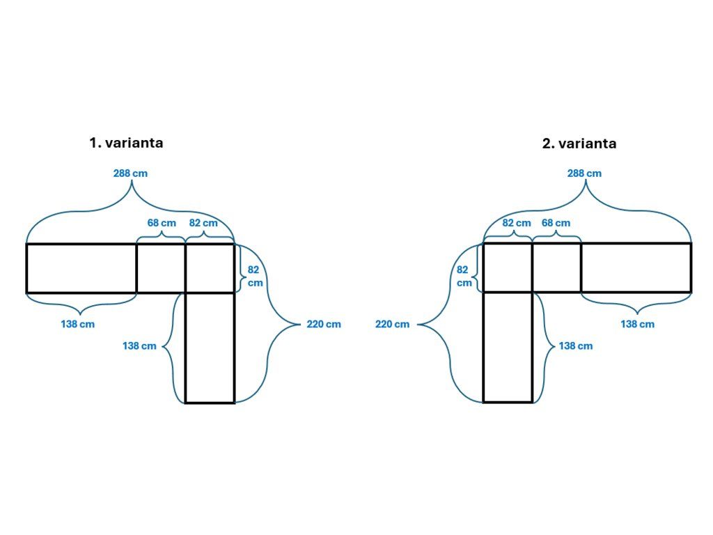 | obsah setu: | 2x sofa (levé a pravé), 1x rohové sofa, 1x mezikus, 1x stůl |