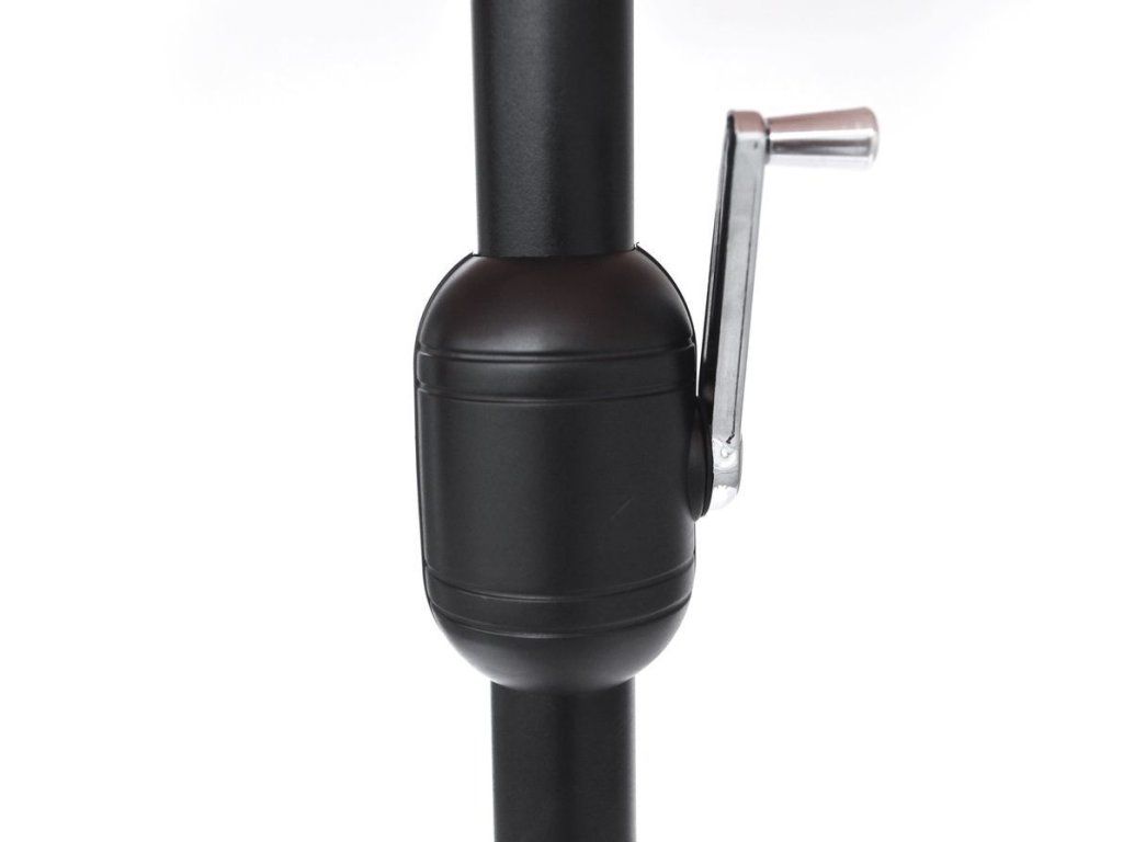 K otevírání slouží klička. Slunečník s moderním designem bez střapců.