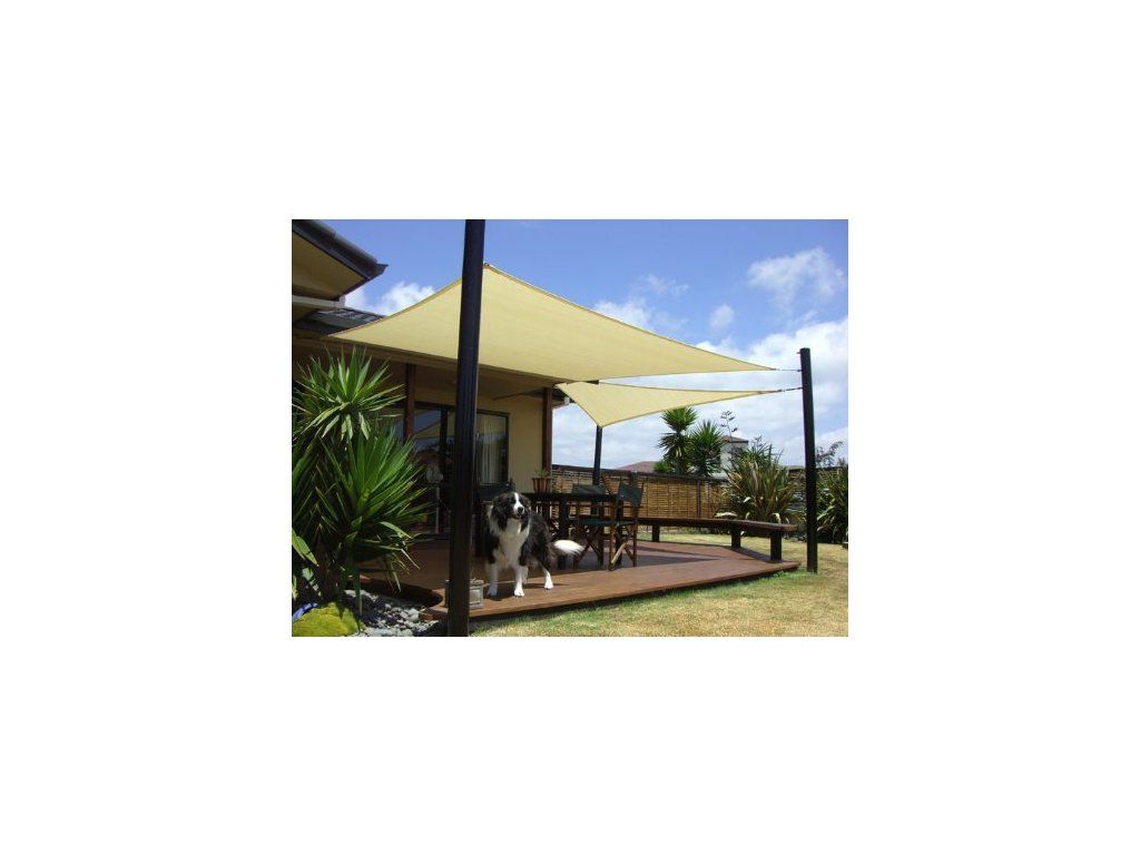 Praktická stínící plachta o velikosti 3,6x3,6x3,6 m je skvělou alternativou slunečníku.