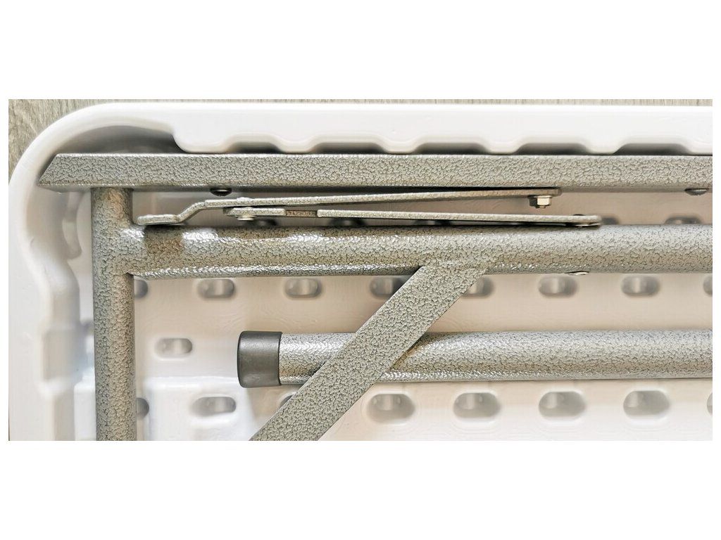 Skládací stůl z velice pevného materiálu HDPE s ocelovou konstrukcí.