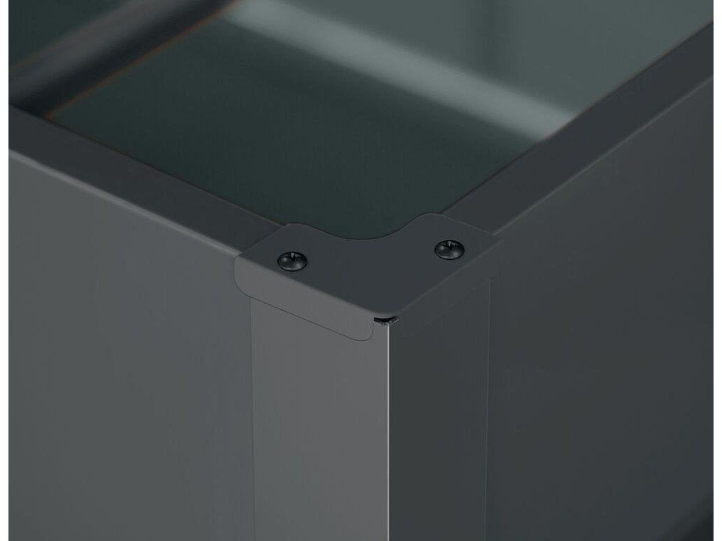 Moderní, praktický a vysoký vyvýšený záhon z hliníkového rámu a pozinkových panelů.
