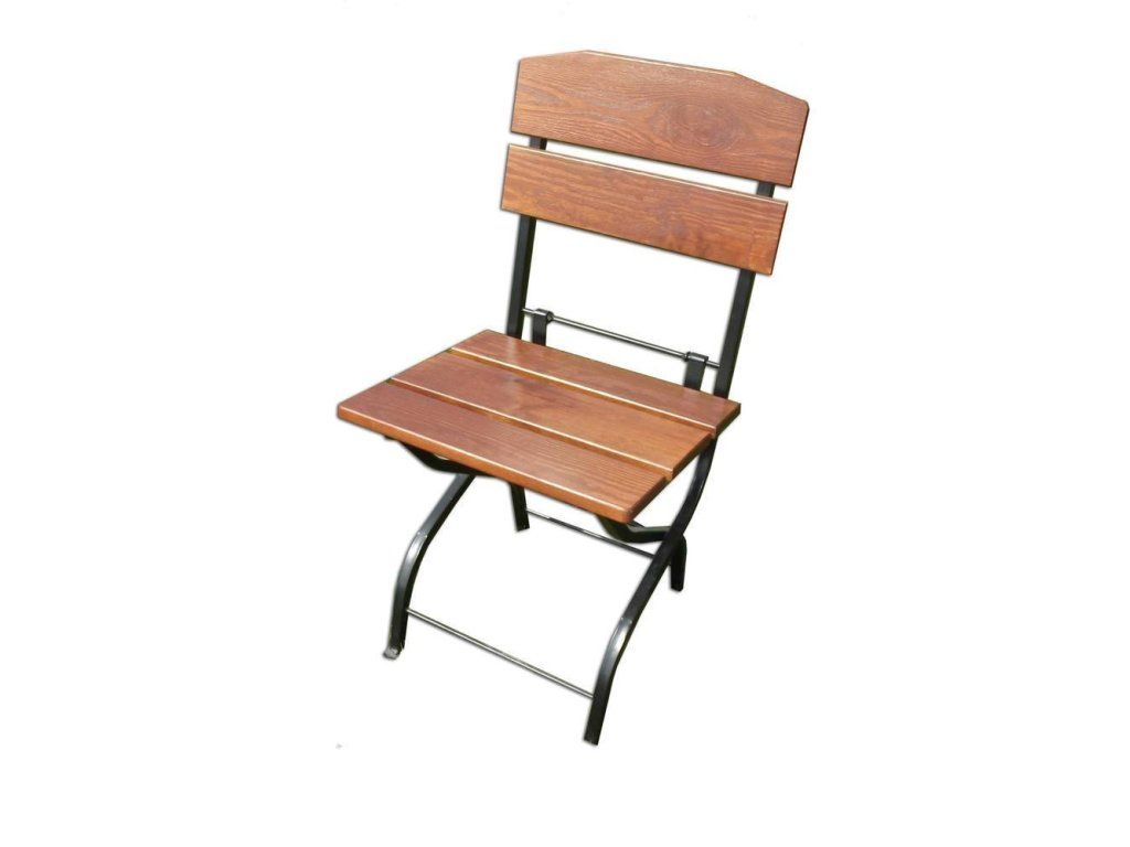 Zahradní křeslo dřevěné s kovovou podnoží. Barva dřeva je hnědá.