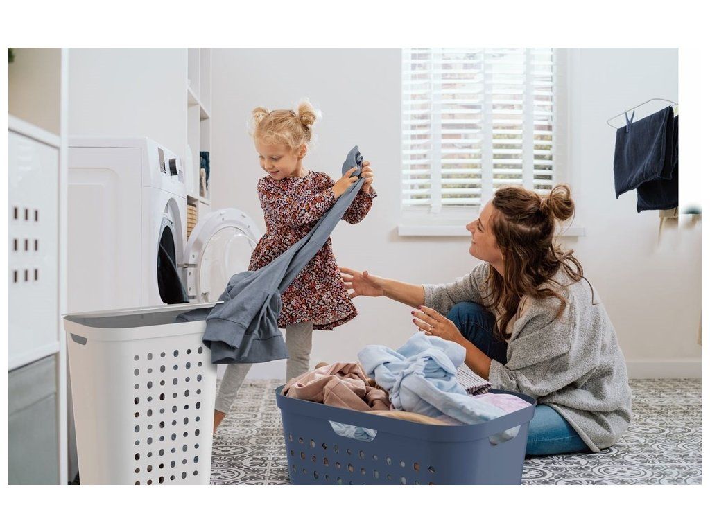 Plastový koš na špinavé prádlo.