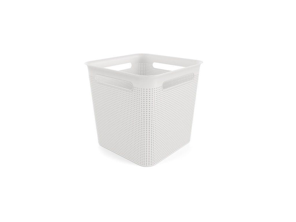 Úložný box s děrovanou strukturou.