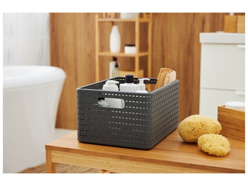 Plastový úložný box A4 ve stylu ratanového výpletu.