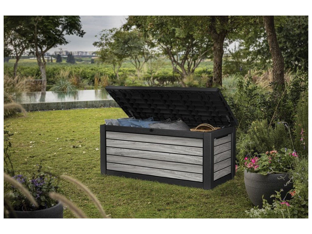 Úložný box SIGNATURE HORIZONTAL 630 L - STORM GREY od značky Keter přináší spojení stylu, funkčnosti a kvality pro dlouhodobé využití na Vaší zahradě.