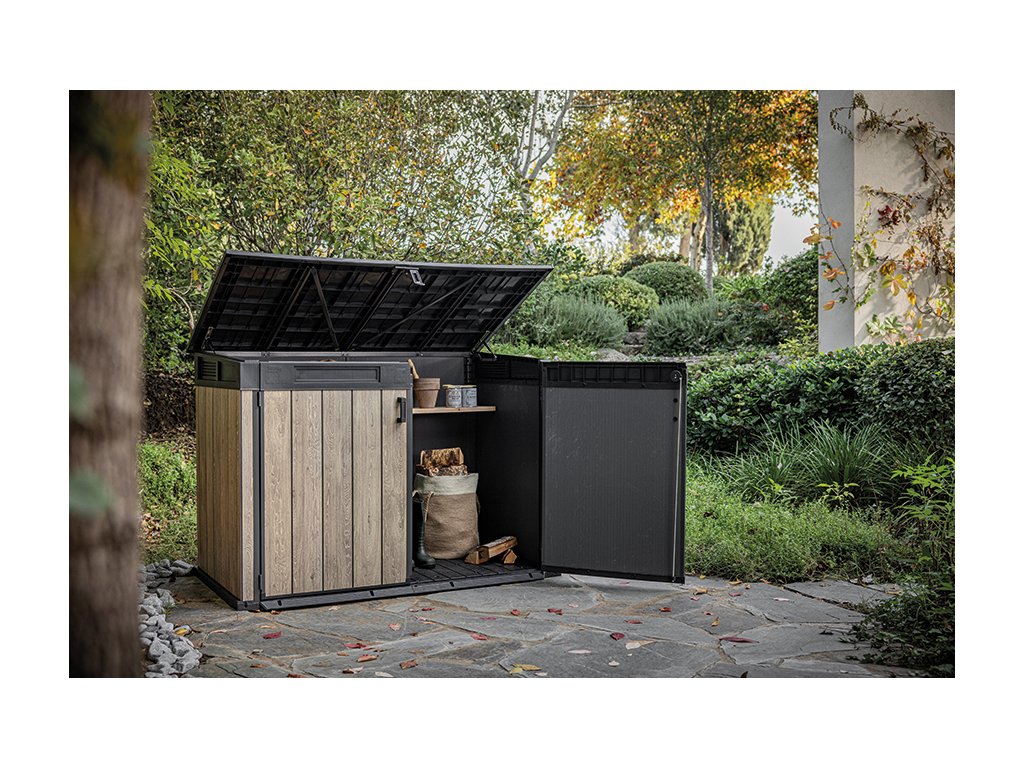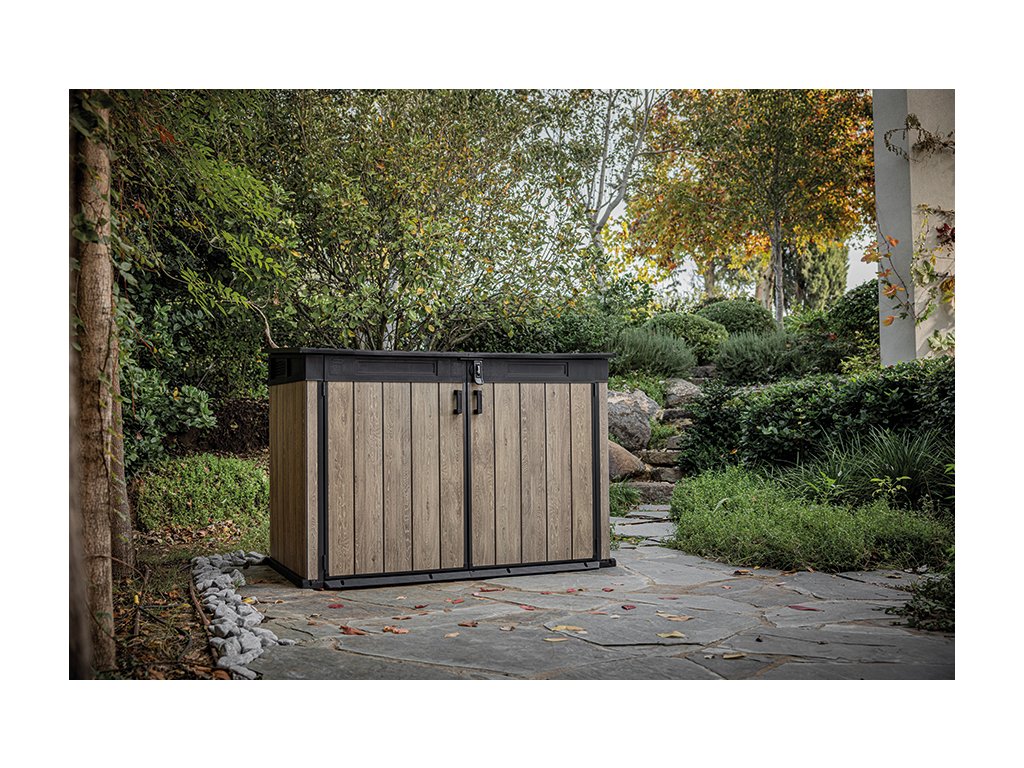 Skříň SIGNATURE 2 020 l od značky Keter nabízí elegantní a praktické řešení pro uložení popelnic, ale i dalšího zahradního náčiní.