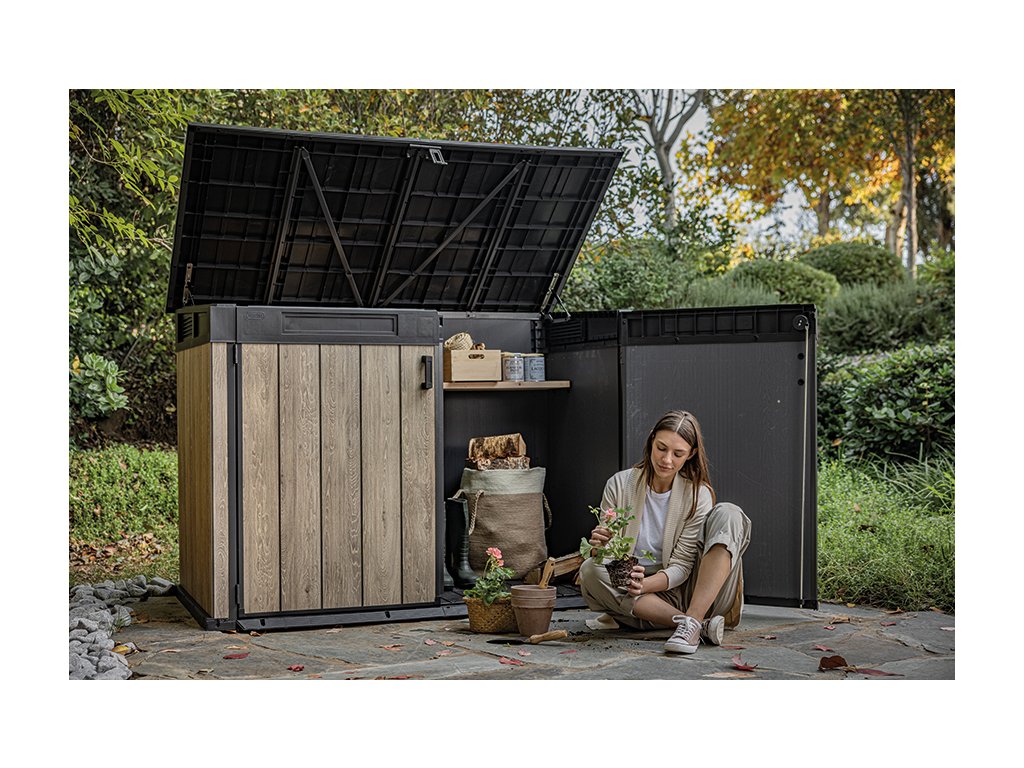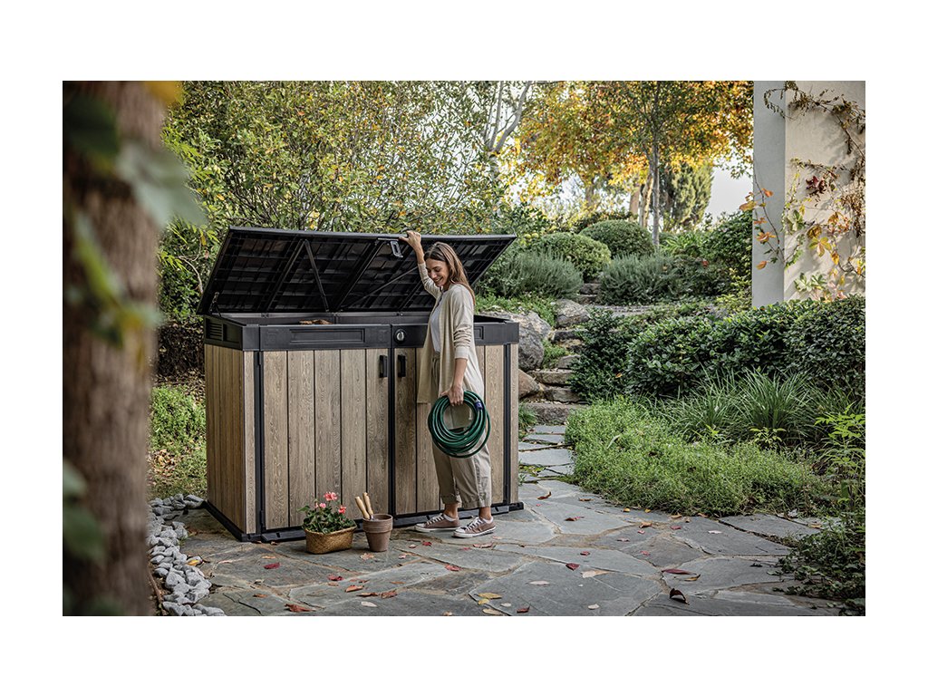 - Jednotný design: Skříň můžete doplnit dalšími výrobky z řady SIGNATURE, jako je zahradní domek či vysoká skříň, pro dokonalý vzhled celé zahrady.