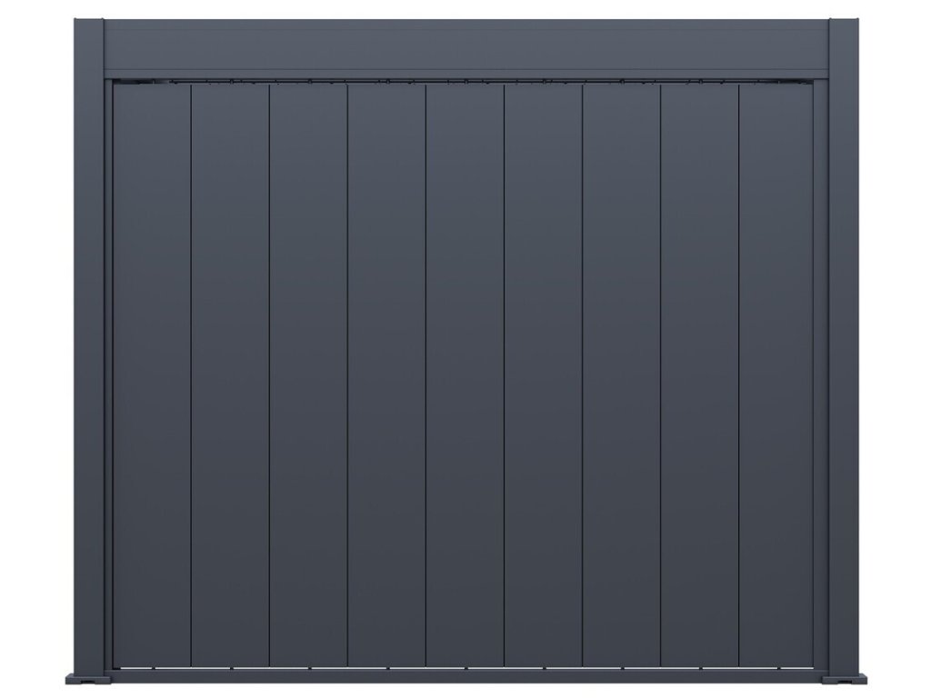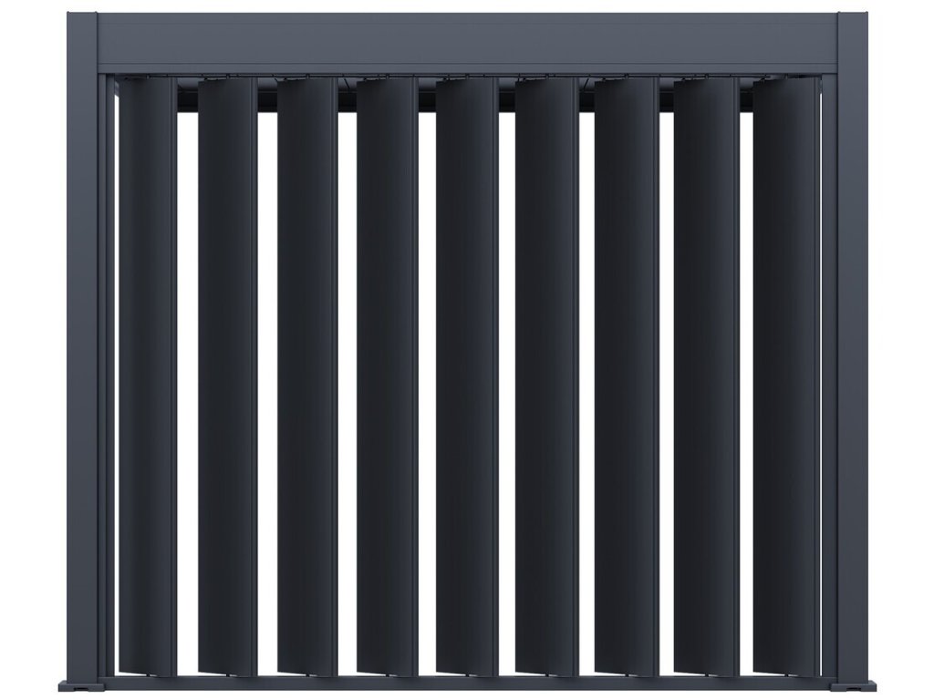 Pro maximální využití bioklimatických pergol nabízíme také příslušenství v podobě stěny s vertikálními sklápěcími lamelami pro zastínění bioklimatické pergoly a získání většího soukromí.