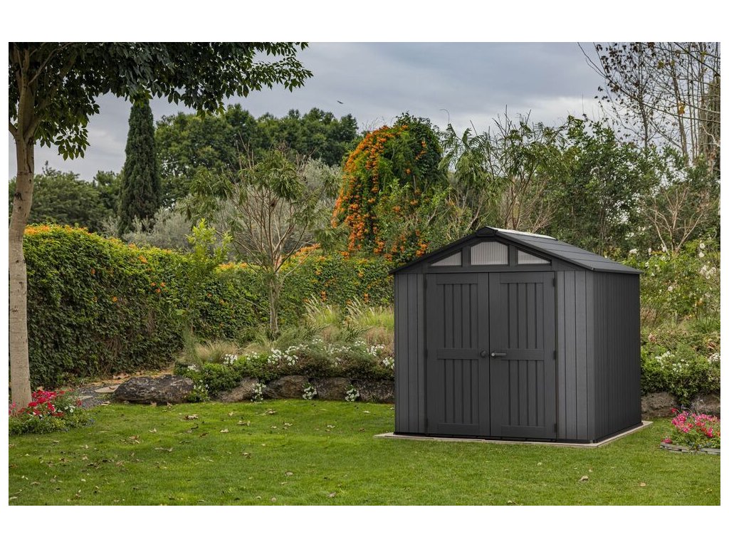 Vítejte v nové éře zahradních úložných řešení s naším extra velkým, bezúdržbovým domkem STRONGHOLD 8x8. Navržen s ohledem na Vaše potřeby a estetiku, tento robustní plastový zahradní dům je vyroben z prvotřídního složení pryskyřic, které zajišťuje maximální odolnost vůči nepříznivým povětrnostním podmínkám.