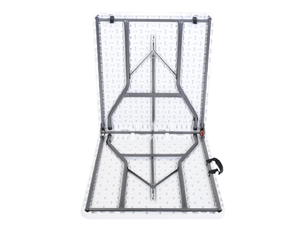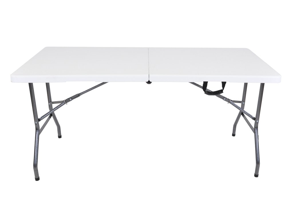 Skládací stůl z velice pevného materiálu HDPE s ocelovou konstrukcí.