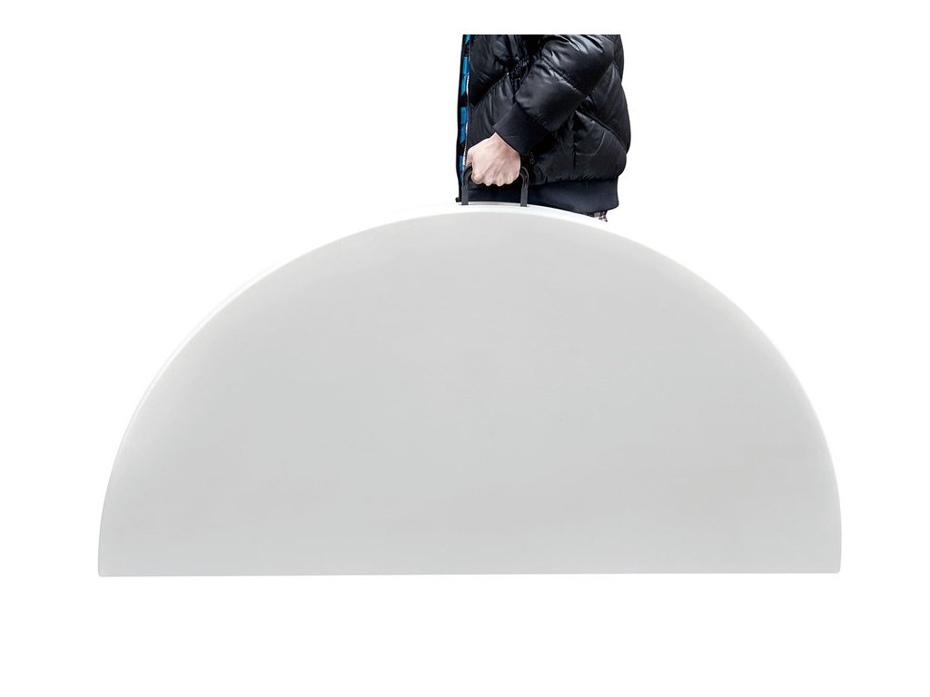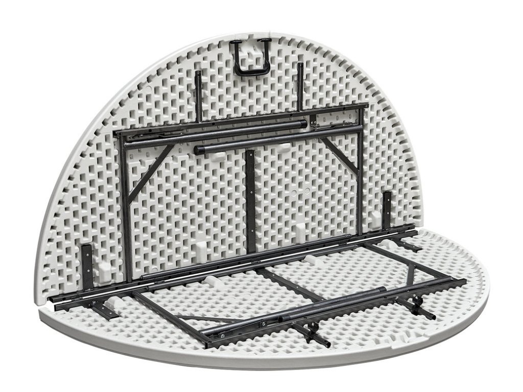 Skládací stůl z velice pevného materiálu HDPE s ocelovou konstrukcí.