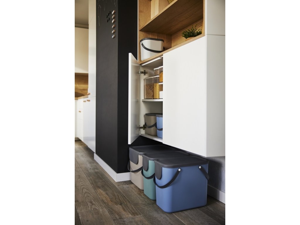 Menší box s víkem a madlem je ideální na organický odpad, kávové kapsle, pro ukládání tablet do myčky nádobí, jako stolní odpadkový koš atd.