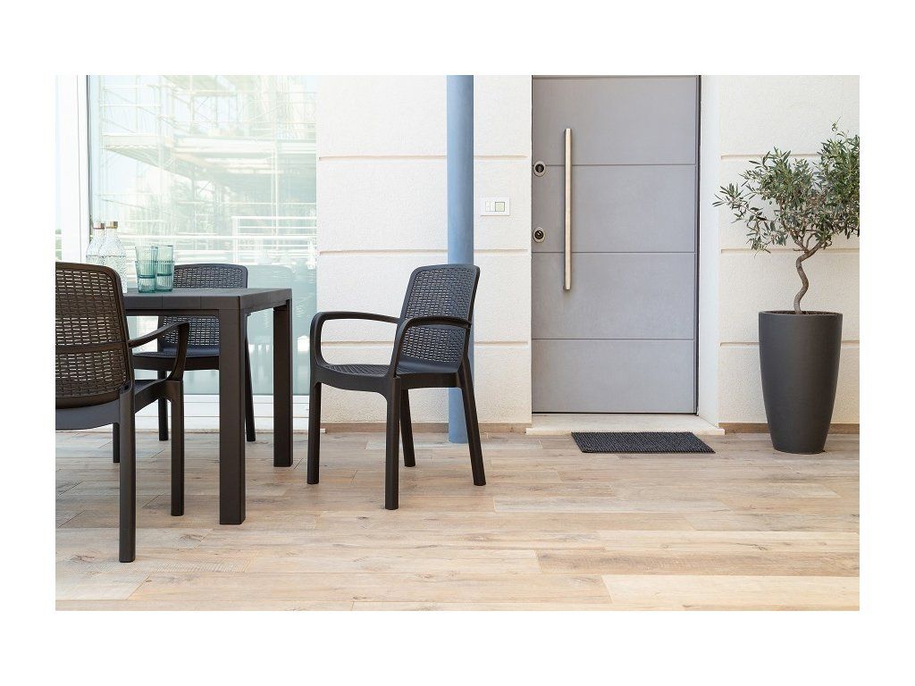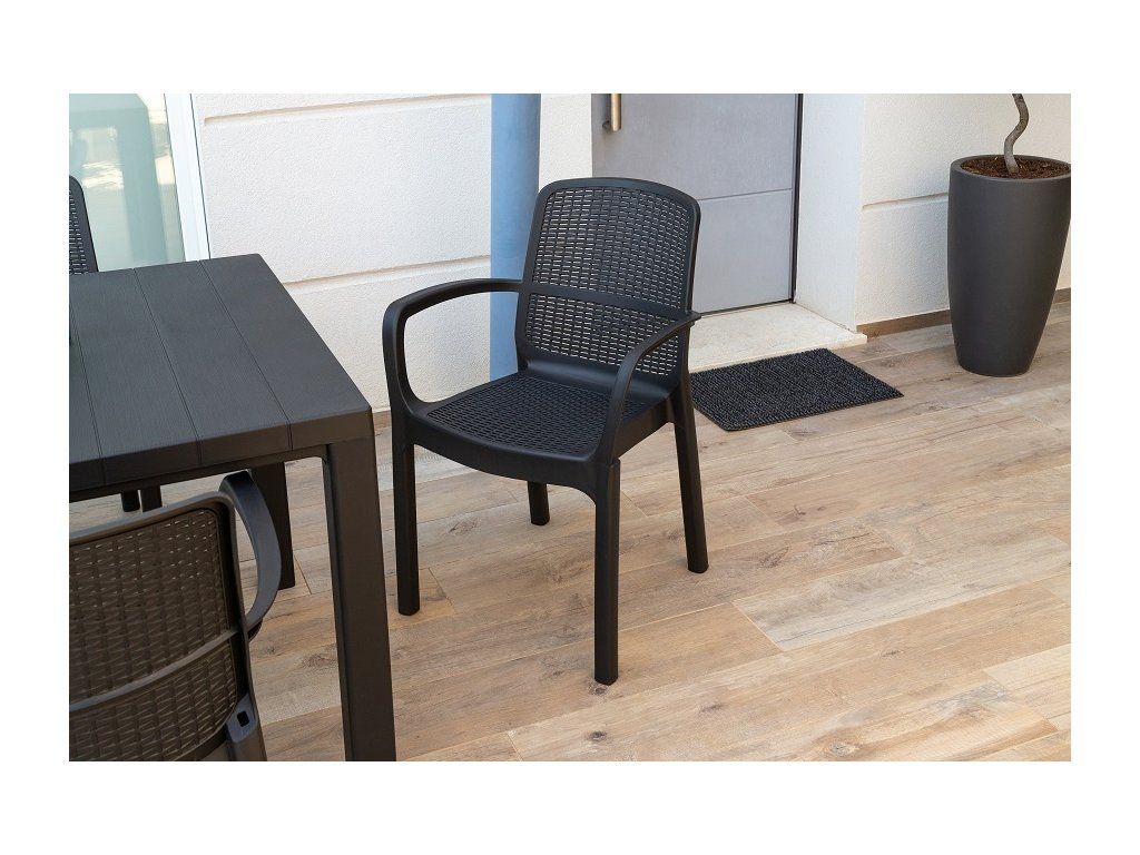 Grafitové provedení křesla NUMANA je univerzální a skvěle doplní mnohé stoly či sestavy v této barvě, což Vám umožní vytvořit elegantní a vkusné venkovní prostředí.