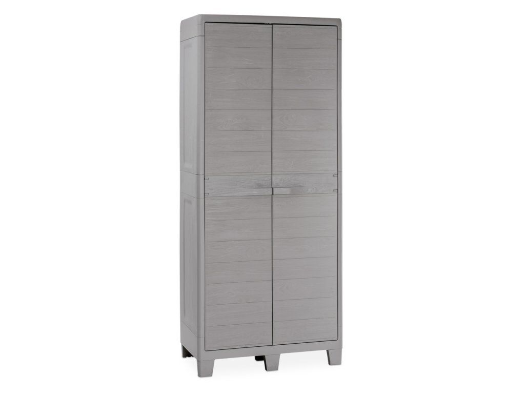 Objevte dokonalé řešení pro Vaši zahradu s naší vysokou dvoudvéřovou plastovou skříňkou WOODYS HIGH XL v módním provedení dvou elegantních světle šedých odstínů. Přinášíme Vám kombinaci praktičnosti a stylové estetiky s věrností k přírodě díky realistické imitaci dřevěného povrchu.