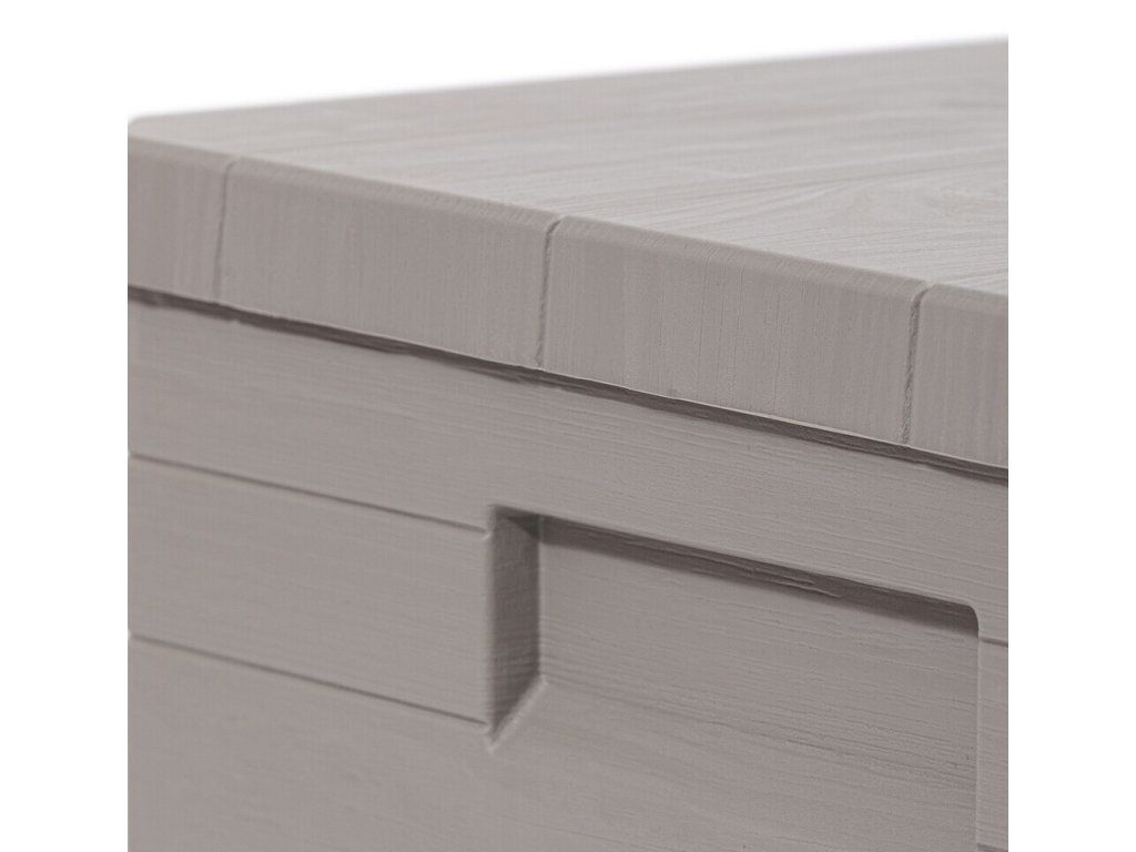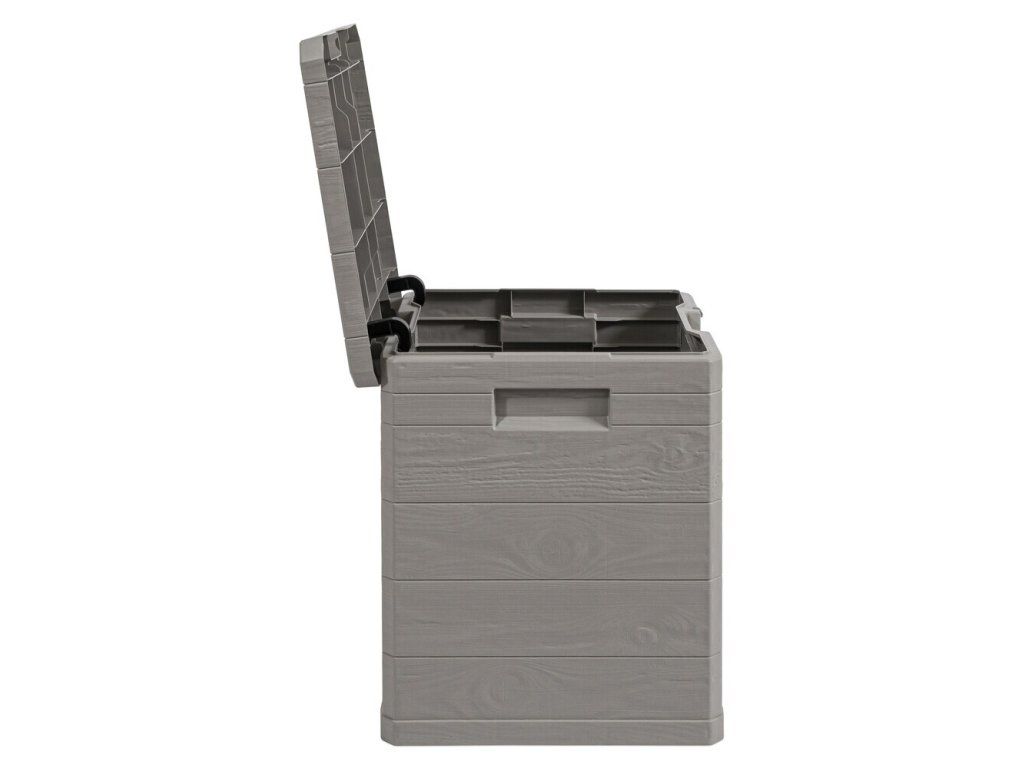 Díky svému atraktivnímu designu se tento box skvěle hodí do jakékoli zahrady nebo na terasu. Jeho imitace dřevěného povrchu přidává do prostoru příjemný rustikální šarm.