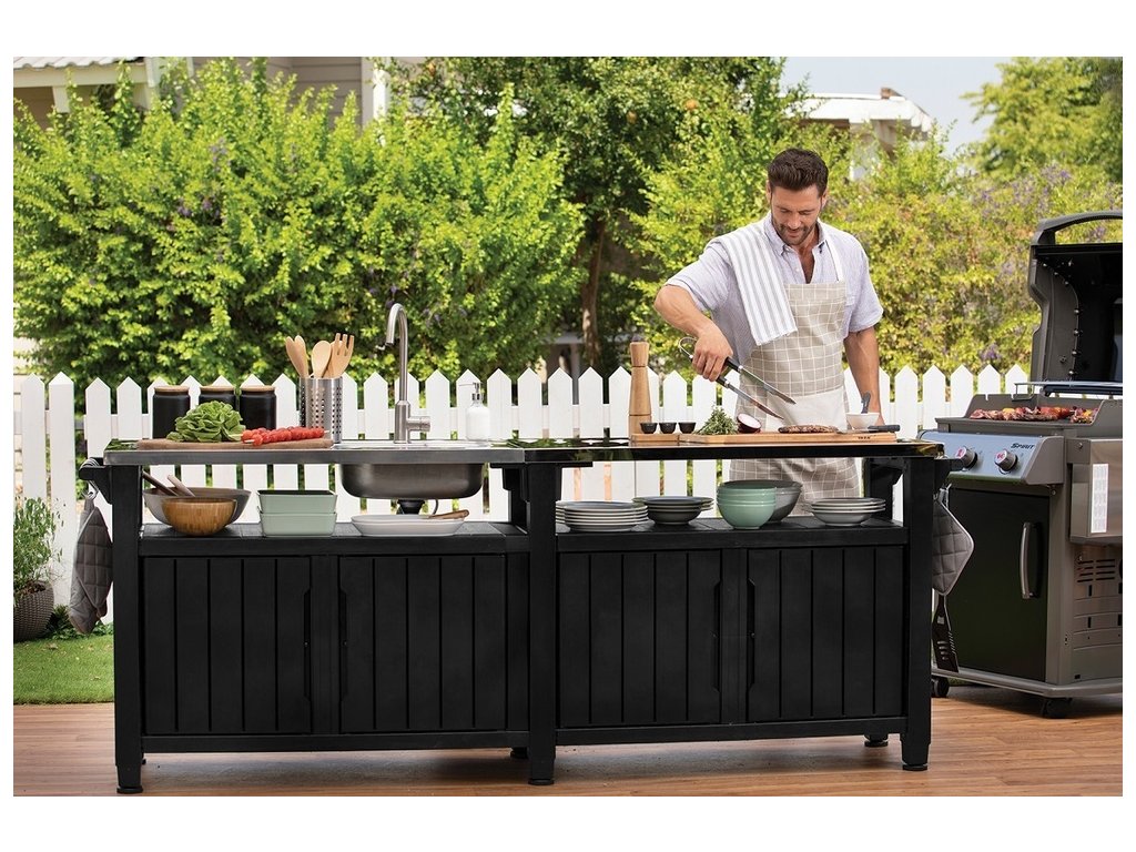UNITY CHEF je velká moderní mobilní skříňka, doplněná o dřez, kterou oceníte především při grilování!