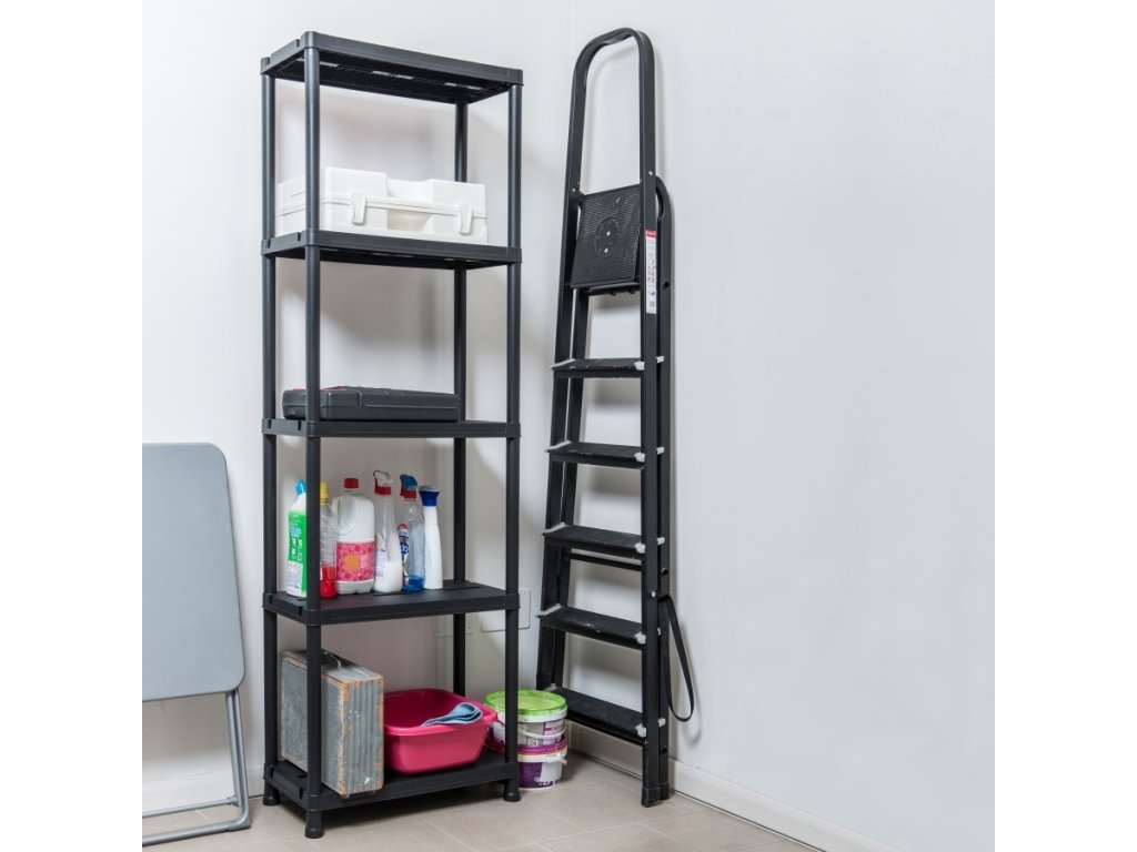 Regál disponuje pěti policemi. Spodní police má nosnost až 50 kg, zatímco další čtyři police jsou schopny každá unést až 25 kg, což umožňuje bezpečné a efektivní uskladnění různorodých předmětů a vybavení.