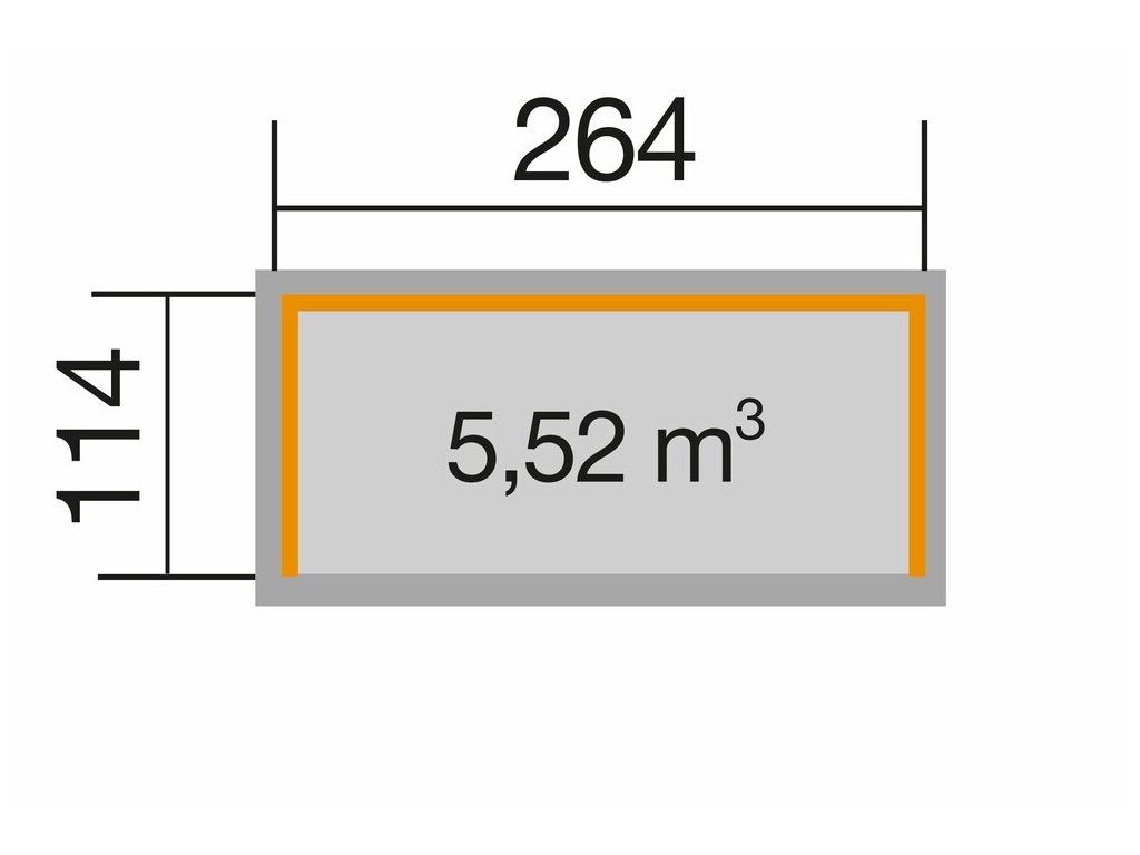 Vnitřní rozměry jsou 264 x 114 cm a celkový objem je 5,52 m³.
