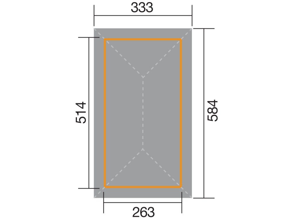 Je vybavena robustní střechou z masivního dřeva o tloušťce 19 mm, která vás ochrání před slunečním zářením. Výška hřebene je 291 cm a světlá výška 205 cm. Sloupky o velikosti 12x12 cm.