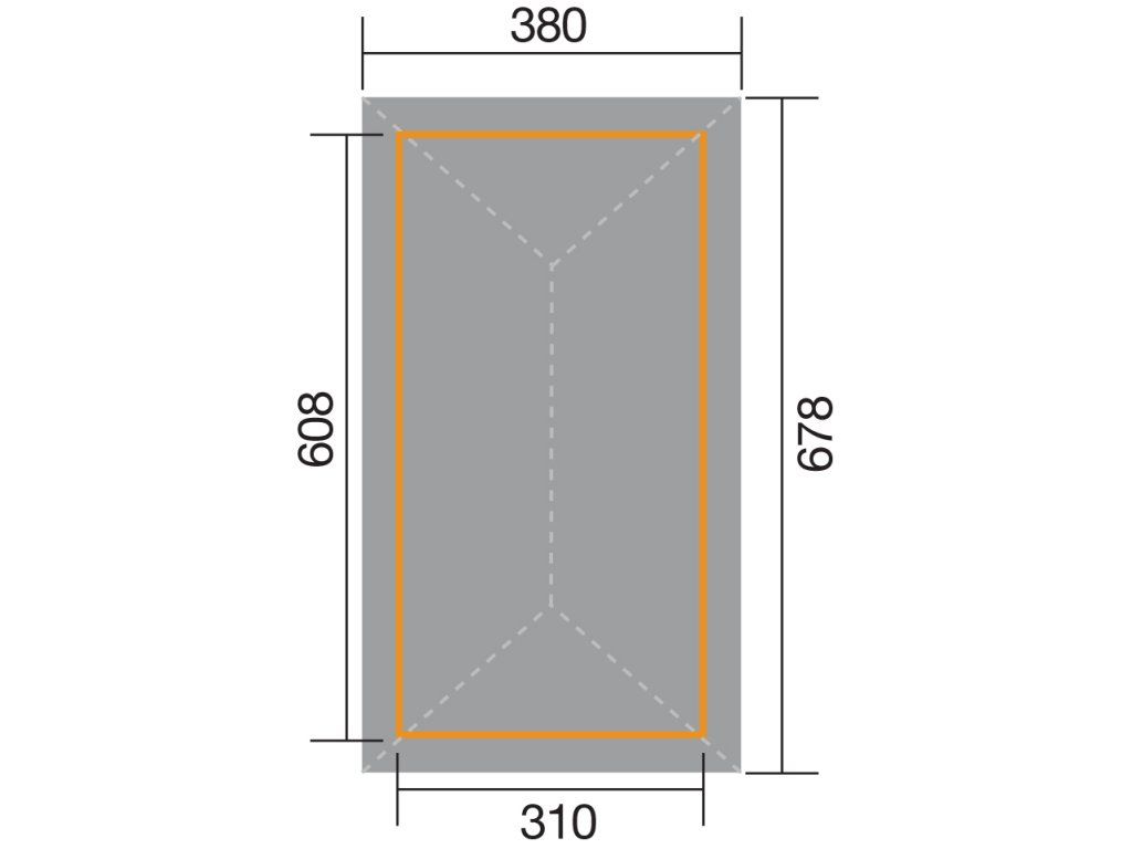 Je vybavena robustní střechou z masivního dřeva o tloušťce 19 mm, která vás ochrání před slunečním zářením. Výška hřebene je 306 cm a světlá výška 206 cm. Sloupky o velikosti 12x12 cm.