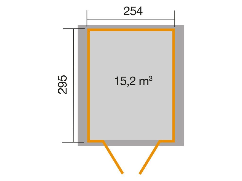 Základna domku (bez přesahu střechy) je 254 x 295 cm, podlaha z masivního dřeva o tloušťce 15,5 mm, šikmá střecha z masivního dřeva o tloušťce 16 mm a síle stěny 19 mm zajišťují potřebnou stabilitu.