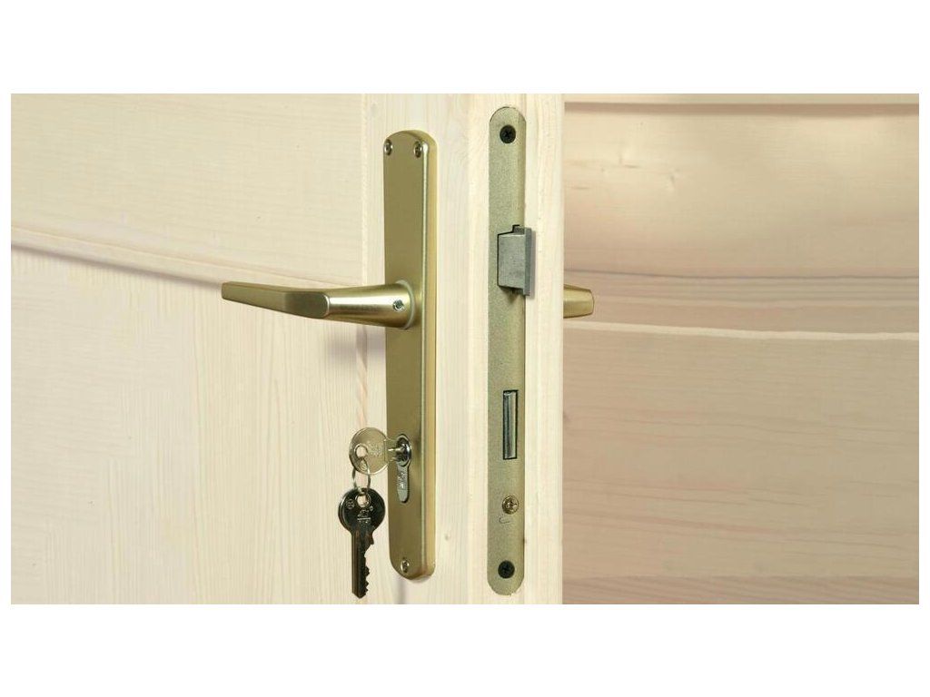 Vysoký rám jednokřídlých dveří ocení i vyšší postavy. Domek má vysoká okna, takže se nemusíte bát nedostatku přírodního světla. Zastřešená 200 cm dlouhá přístavba je obzvláště praktická a nabízí celou řadu dalších využití. Může sloužit například k uskladnění zahradnického náčiní nebo jako zastřešené posezení na vaší zahradě.