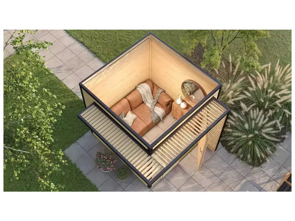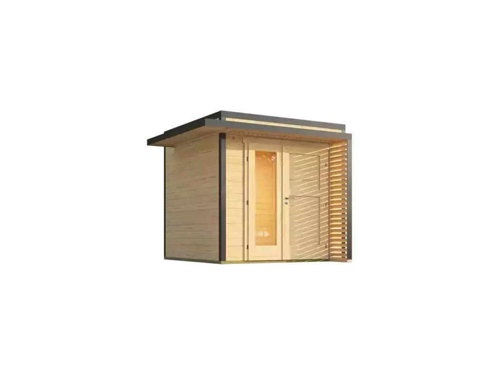 Domek z řady WEKA Pure Garden, stylový zahradní minimalistický domek, který ve vaší zahradě vytváří harmonické spojené mezi přírodou a moderním designem. Je doplněn o designové dvoukřídlé dveře s velkou prosklenou tabulí v levém křídle. Boční a střešní lamely dodávají domku stylový vzhled.