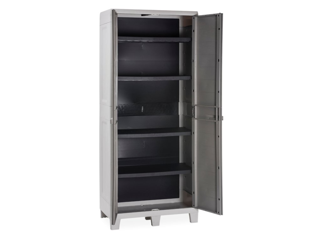 Objevte dokonalé řešení pro Vaši zahradu s naší vysokou dvoudvéřovou plastovou skříňkou WOODYS HIGH XL v módním provedení dvou elegantních světle šedých odstínů. Přinášíme Vám kombinaci praktičnosti a stylové estetiky s věrností k přírodě díky realistické imitaci dřevěného povrchu.