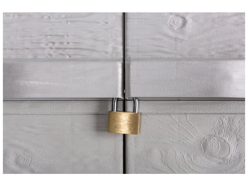 Pro Vaše uklidnění a ochranu Vašich cenných nástrojů je naše skříňka uzamykatelná, poskytující bezpečné úložiště pro veškeré Vaše zahradní poklady. Nejenže se můžete cítit dobře, že přispíváte k ochraně životního prostředí, ale můžete si být jisti, že naše skříňka je vyrobena z recyklovaného materiálu, odolávajícího UV záření.