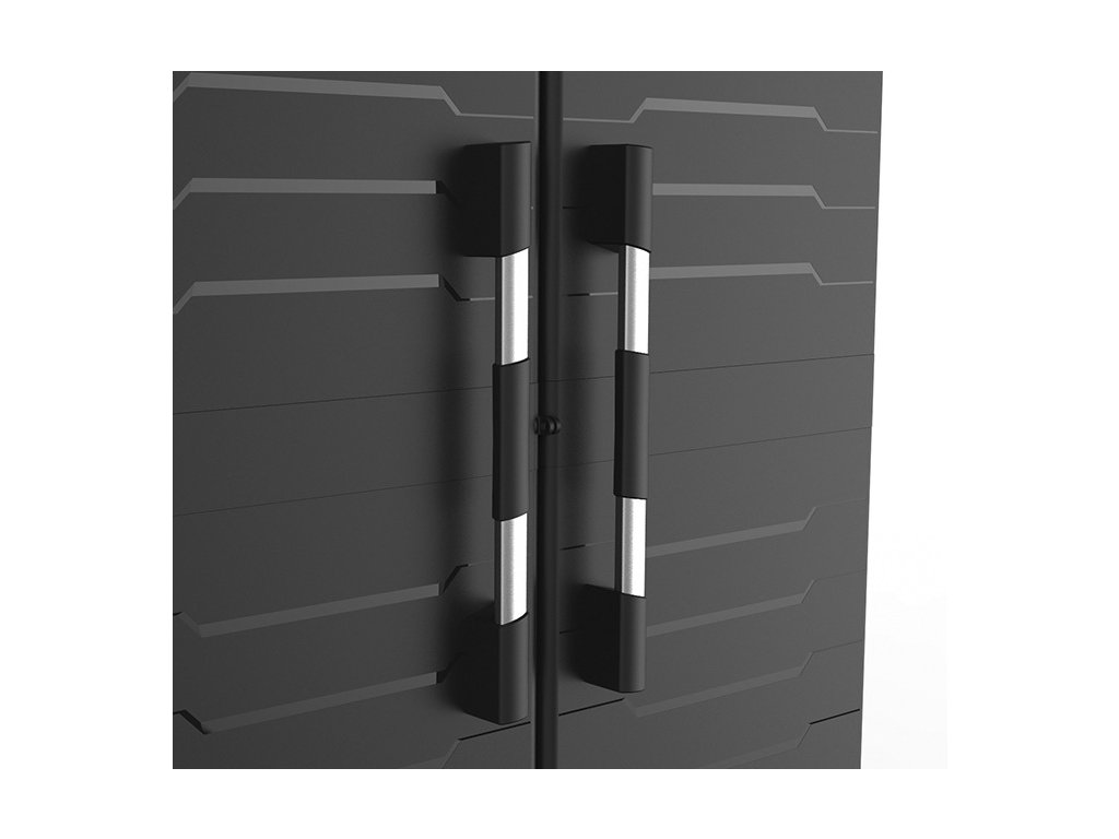 XL GARAGE skříně poskytují více než základní vybavení: posunovatelné police díky systému SLO, nosnost polic až 45kg, zesílené spodní dno se středovou nohou navíc, uzamykatelnost na visací zámek a optimální rukojeti.