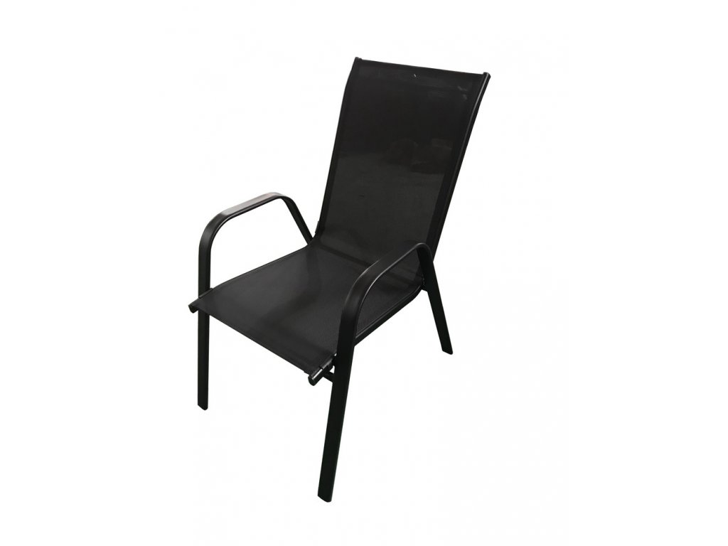 Zahradní křeslo s pevnou kovovou konstrukcí a čalouněním z umělé černé textilie pro pohodlný odpočinek na Vaší zahradě či terase.